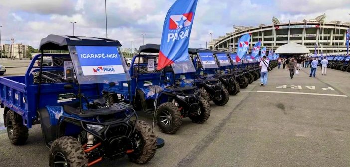 IGARAPÉ-MIRI – O prefeito Roberto Pina participou, nesta quinta-feira (26), no estacionamento do Estádio Mangueirão, em Belém, da cerimônia de entrega de novos equipamentos para a infraestrutura municipal. Na ocasião, Igarapé-Miri recebeu um quadriciclo basculante de alta performance, com capacidade para 1.800kg, que será integrado à frota da cidade.